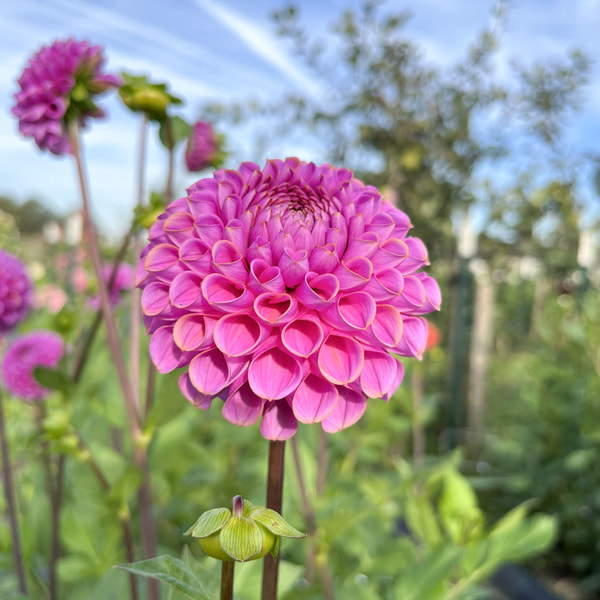 You can never have enough medium-sized pink pompons, as anyone who has ever prepared flowers for a wedding knows. That's why we are constantly on the hunt for dahlias from this family, and this is a very successful piece! The flowers are roughly 7-8 cm large and the pink is uniform.