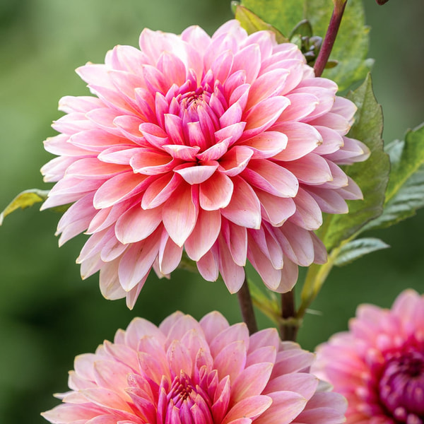 A classic among dahlias! A delightful, pale pink, small pompon. The centers transition to white, resembling a snowy hill. A must-have if you grow flowers for wedding floristry!