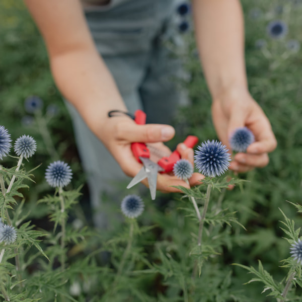 Although it's named blue, it's a shade of steel blue. Globe thistle is a perennial, but growing it is no hard work! It blooms in May to June, but we recommend harvesting even before it blooms; that's when it's most beautiful!