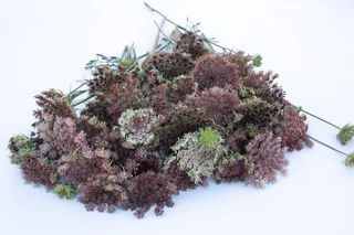 Pure splendor! We don't have nicer photos for this year because every year we cut the ornamental carrot down to the last stem and there is simply no time left for photos. Thin, strong stems and umbel inflorescences resembling dill at their ends. There are thousands of tiny flowers on each stem creating a veil or lace effect. It is a mixture of colors, where some flowers are pure white, but the majority are chocolate to burgundy with a touch of white.